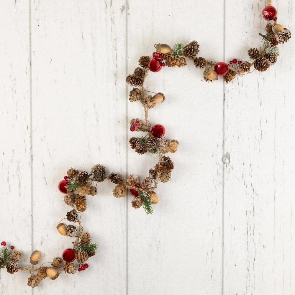 This unlit garland is adorned with rustic pine cones vibrant berries fragrant pine needles and classic red ball ornaments evoking the timeless charm of the holiday season. Equipped with a convenient twine and wire loop on one end it’s effortlessly easy to hang wherever you desire. Perfect for adding a touch of festive elegance to mantels staircases doorways and more this garland will bring warmth and cheer to your home throughout the holiday season. Product Features: Christmas garland. Adorned with pine cones berries pine needles and red ball ornaments. Twine loop on 1-end for hanging. Unlit. Recommended for indoor use – if using outdoors place under a covered area. Dimensions: 39.5 in. long x 3 in. wide. Material(s): wood/plastic.