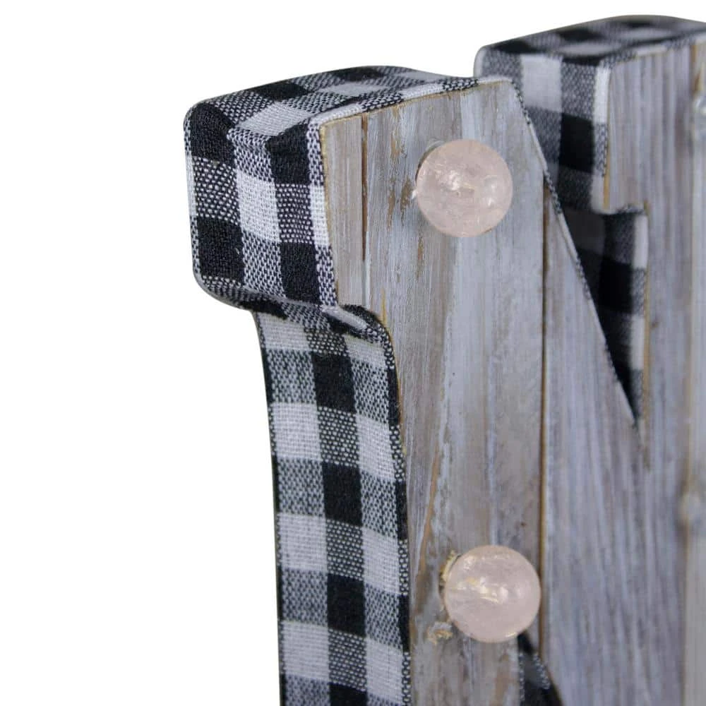 Bring a bit of the outdoors into your holiday decor with this sign. Features a wooden designed œNOEL in. light-up sign with 15 bright white bulbs surrounding the letters the best part is the words are 3D. All of these characteristics will impress your guests. You can place this sign on your mantel fireplace or even given away as a gift. Features: Christmas tabletop decor. Wooden design with the word œNOEL in. . Features 15 bulbs on the front of the sign. Battery Operated batteries not included. Recommended for indoor use only. Dimensions: 8 in. H x 17 in. W x 1.25 in. D. Materials: plastic/wood.