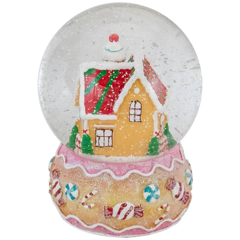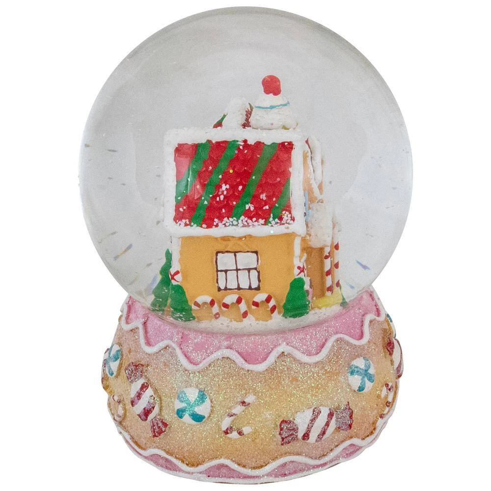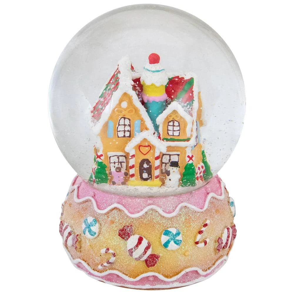 This gorgeous snow globe would be the perfect addition to your holiday decor this year. This snow globe has a fun gingerbread base with lots of candies and when the knob on the bottom is twisted it plays the classic song ‘We Wish You a Merry Christmas’. The inside of the globe has a gingerbread house with a snowman and when it is shaken white snow and iridescent glitter fall over the house. Perfect to use as a centerpiece accent piece or to give as a Christmas gift to someone special in your life. Product Features: Musical gingerbread house snow globe. Twist the knob on the bottom to play the song ‘We Wish You a Merry Christmas’. Comes on gingerbread base with candies. White snow and iridescent glitter float inside when shaken. Recommended for indoor use only. Dimensions: 6.5 in. H x 4.5 in. Dia. Material(s): glass/resin.