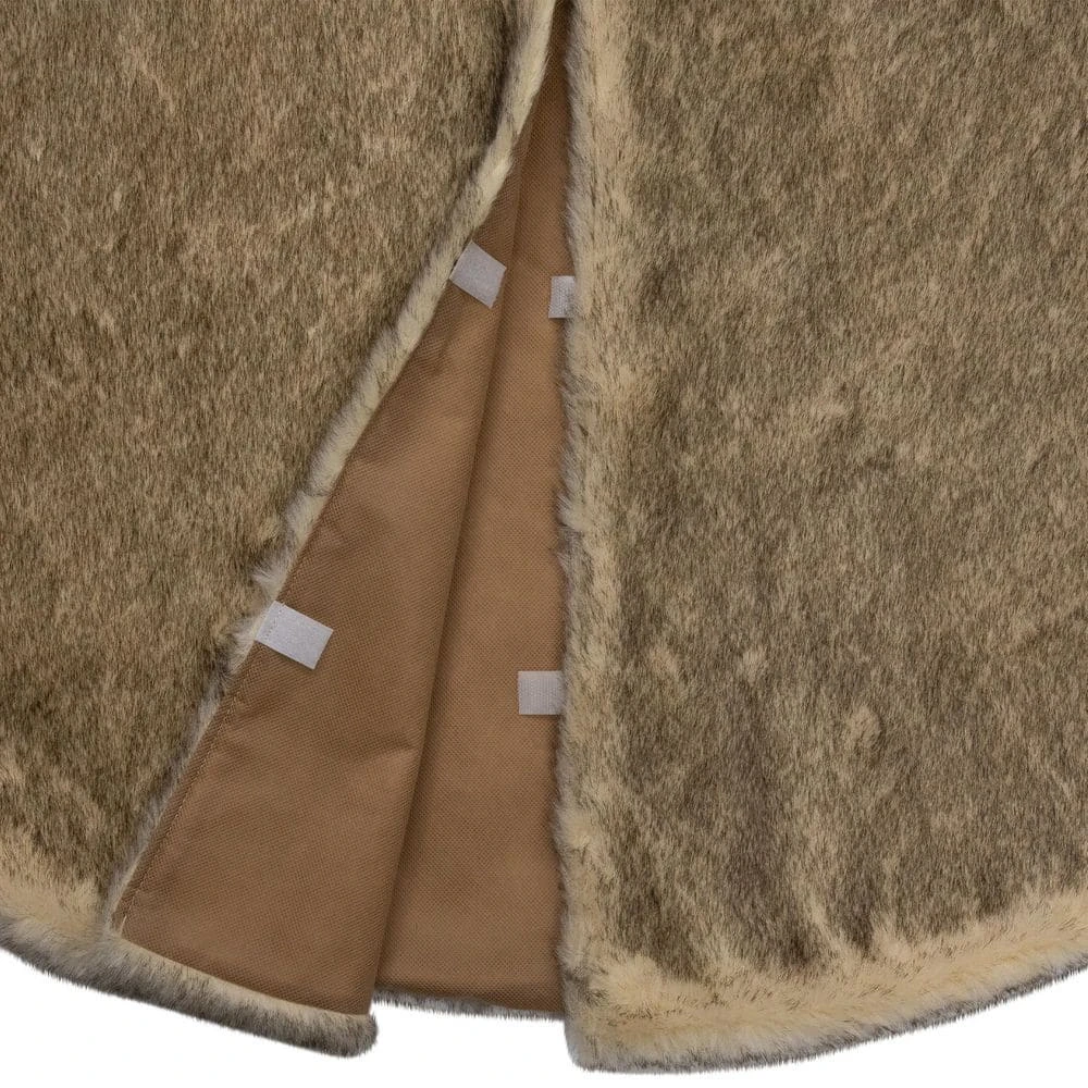 Wrap your holiday season in warmth and luxury with our faux fur Christmas tree skirt. Crafted to perfection it will be the perfect addition to your holiday decor. Designed with plush faux fur it adds a cozy atmosphere while beautifully framing the base of your Christmas tree. Elevate your celebrations and create cherished memories with this timeless and exquisite tree skirt the perfect finishing touch for your winter wonderland. Product Features: Faux fur tree skirt. Beige and brown faux fur design. One-sided design. Velcro closure in the back. For indoor use only. Care instructions: spot clean only. Dimensions: 48in. diameter. Material(s): polyester/faux fur