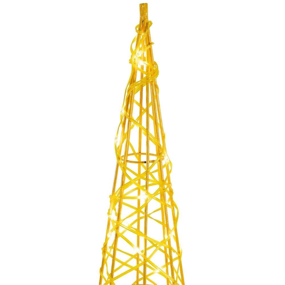 Add a warm glow to your holiday decor with this set of three gold mesh outdoor cone trees! Pre-lit with 480 warm white twinkling LED lights these shimmering trees create a stunning display day or night. With graduated heights of 24in. 31.5in. and 39.5in. they add beautiful dimension to your yard porch or entryway. Designed for both indoor and outdoor use these cone trees for Christmas bring seasonal charm to any space. Product Features: Pre-lit with 480 warm white lights. Twinkle function. Bulb size: micro. Bulb type: LED. 6.5’in. lead wire. Additional product features: LED lights use 90% less energy. Cool to the touch. UL approved and certified for indoor or outdoor use. Ground stakes included. Wire gauge: 22. 120 volts 60 hertz .30 amps. Dimensions: Large: 39.5in. high x 10in. base diameter. Medium: 31.5in. high x 8in. base diameter. Small: 24in. high x 6in. base diameter. Material(s): metal/plastic/wire. Note: Set of 3 includes; 1 of each tree shown for a total of 3 trees