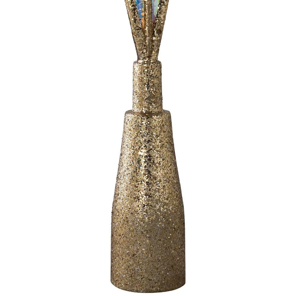 - Showcases a champagne gold glitter swirl design