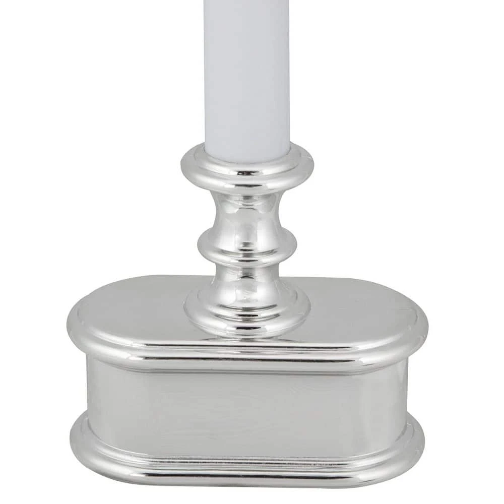 Bring a charming touch to your windows with these battery operated window candles. This set of 4 includes white candles with a silver base designed to add a soft glow to your home. Each candle features a frosted LED C5 bulb that mimics the warm glow of a traditional candle creating a cozy atmosphere in any room. With an automatic timer the candles turn on for 8 hours and off for 16 hours offering effortless convenience. Perfect for the holiday season these battery operated Christmas window candles are ideal for showcasing on windowsills adding a beautiful glow to your Christmas decor. These window candles are also a simple and stylish option for year-round use providing a timeless charm wherever they are placed. Product Features: Set of 4 single light Christmas candles. White candles with silver base. Frosted LED bulb. Bulb size: C5. Battery operated. Each candle requires 2