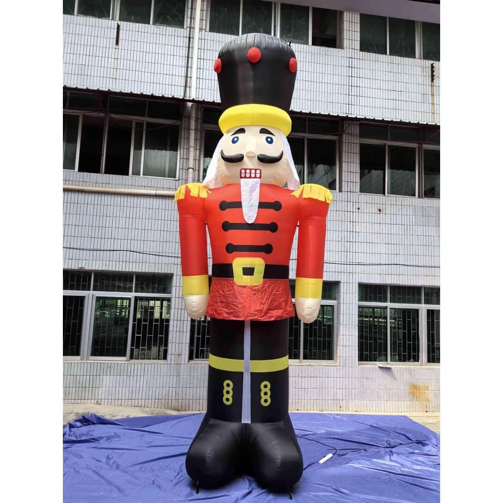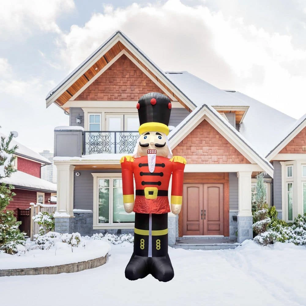 Get ready to make a grand statement this holiday season with our impressive 20-foot inflatable nutcracker soldier. In a majestic and dignified standing position in a traditional red and black uniform adorned with eye-catching yellow accents. This larger-than-life decoration will instantly become the centerpiece of your outdoor Christmas display. It’s perfect for greeting guests and spreading holiday cheer all season long. Bring the magic of the Nutcracker ballet to life right in your own yard with this stunning inflatable decoration. Product Features: Lighted outdoor inflatable soldier decoration. Pre-lit with 5 super lights. Durable weatherproof nylon. Self-inflates in minutes. Collapses quickly for easy storage. Additional Product Features: UL certified and approved for outdoor use. Air blower ground stakes and tether ropes included. 5.25′ white lead cord. AH-3 air blower. Air blower: 120 volts 60 hertz .85 amps 100W. Fuse: 125 volts 5amps. Dimensions: 20′ H x 7′ W x 6′ D. Material(s): nylon/plastic