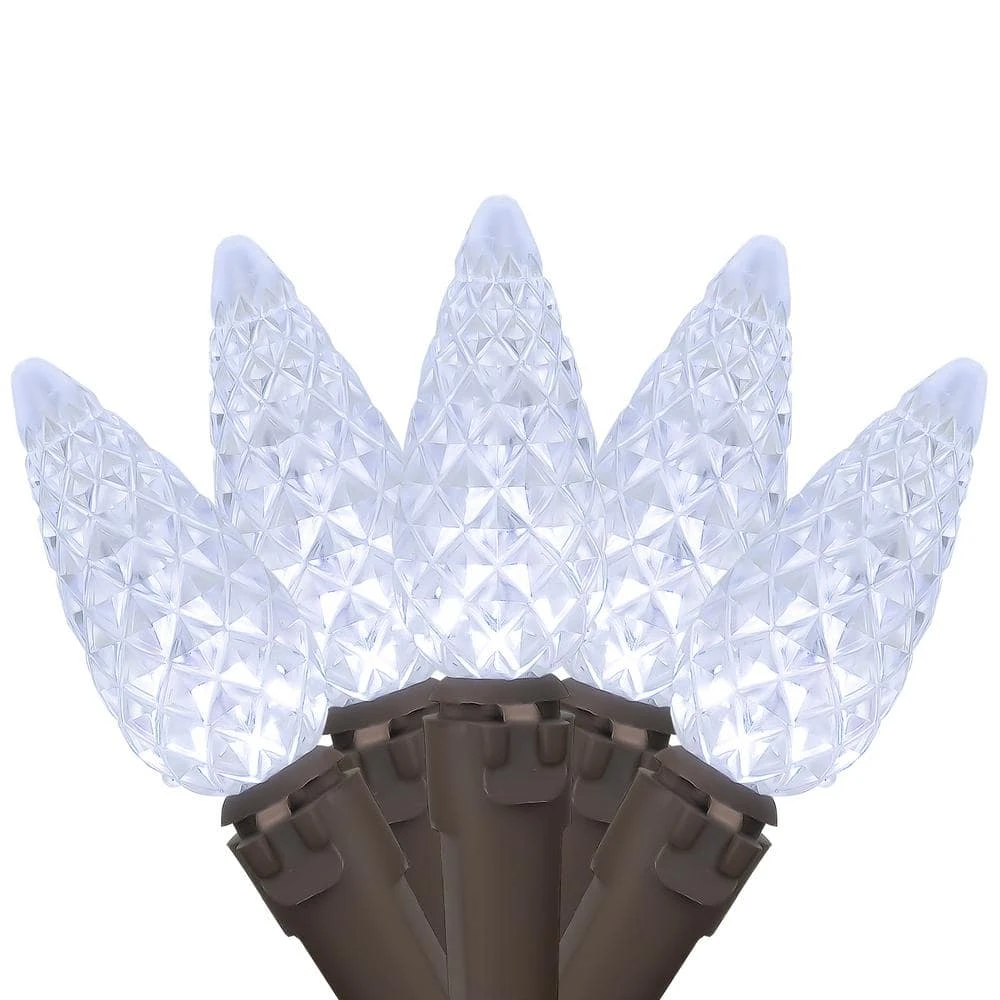 Add some twinkle to your holiday decor with these pure white string lights. Mounted on a brown wire, 70 LED bulbs are spaced 4 in. apart. Durable, non-glass bulbs are cool to the touch.