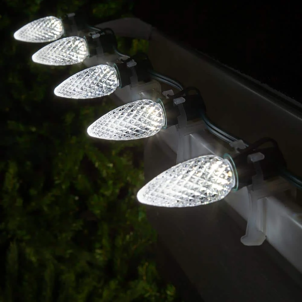 OptiCore faceted Christmas light sets create a dazzling, colorful string light display that’s durable, energy efficient and beautiful. The lens is 115% thicker than ordinary bulbs and made of polycarbonate, up to 200 times stronger than glass. This makes OptiCore bulbs virtually unbreakable. The SMD LED diode inside the bulb saturates the lens evenly with vibrant light, giving these bulbs the perfect brightness and color. And with an average lifespan of 60,000-hours, these are bulbs that will last for years. Get rich, colorful Christmas lights that can stand up to rough treatment with OptiCore LED string lights from Wintergreen Lighting.