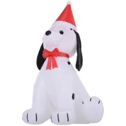 HOMCOM 6 Ft. Pre-Lit LED Puppy Wearing Santa Hat Christmas Inflatable With Red And White Lights