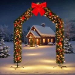 8. 5ft Pre-lit PVC Christmas Arch With 350 LED Lights And Bow And Ornaments