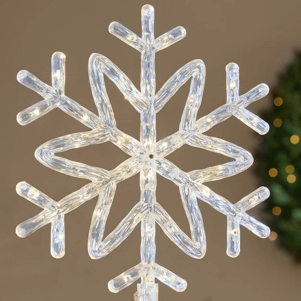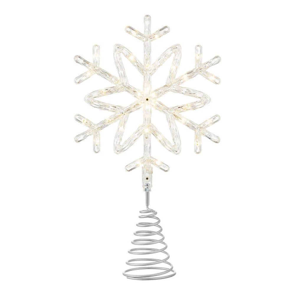 Make your home more festive with this 14.5-inch Philips snowflake tree topper. The 30 energy-efficient LEDs illuminate your seasonal scene and remain lit even if one gets damaged, while the 72-inch lead-in cord supports versatile placement. Featuring three color modes, this tree topper lets you personalize your holiday display with varied light settings, and the two-tone finish adds a touch of airy charm to your Christmas tree. This Philips snowflake tree topper is made of plastic for lasting appeal.