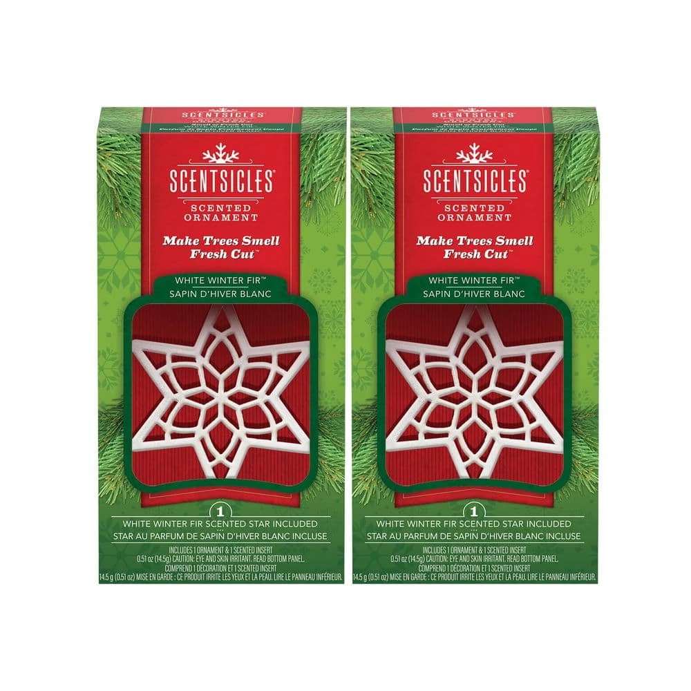 Create timeless Christmas memories with the scent of a fresh-cut tree. Whether adding scent to your artificial greenery or enhancing the scent of your real tree, Scentsicles Scented Star Ornament brings the magic of the season into your home with the real scent of Christmas. Simply place the fragrance-infused star into the snappable ornament, hang on the outer part of the tree, and enjoy the scent of Christmas. This easy-to-use design makes your holiday trees and greenery smell fresh-cut for up to 30 days.
