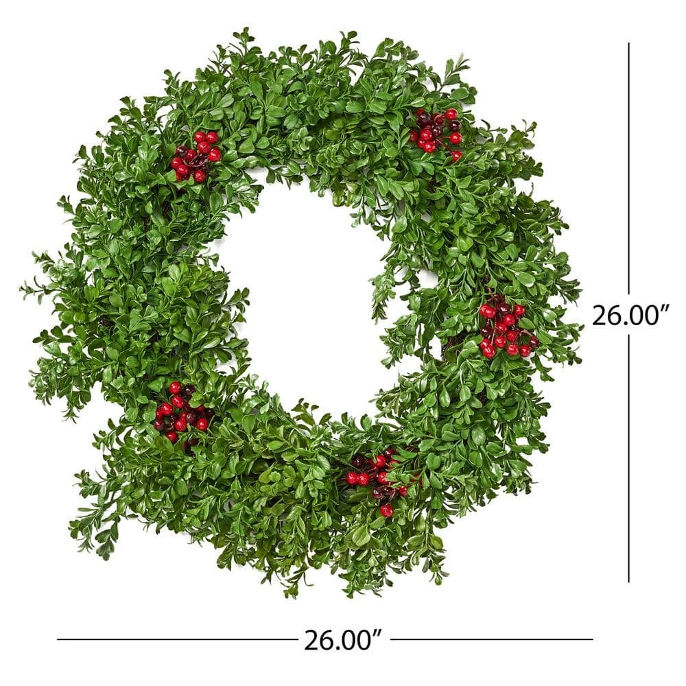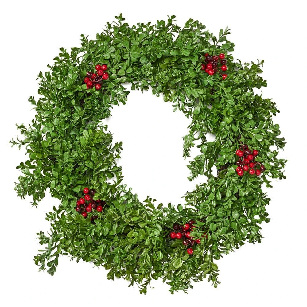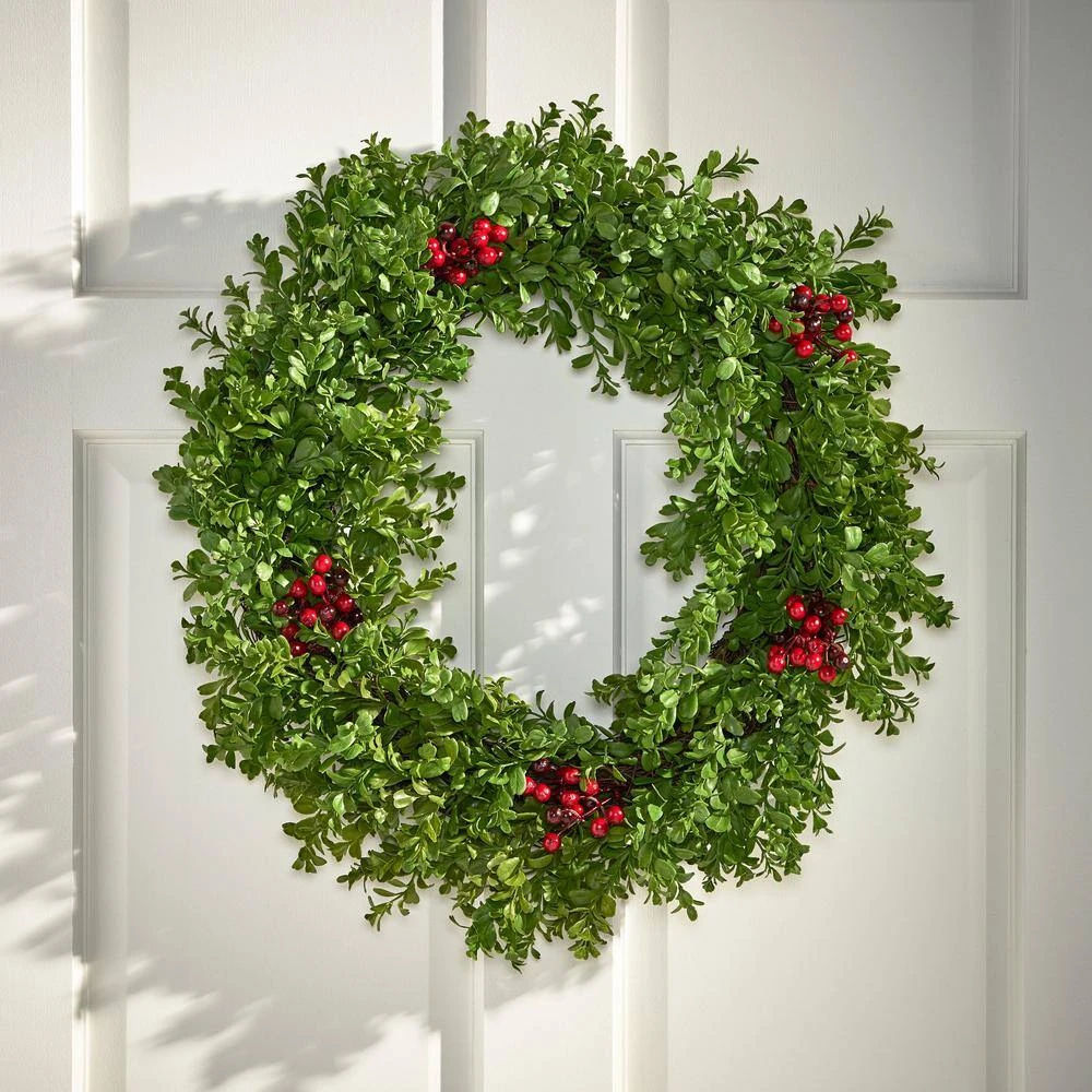 From spring vibes to a merry winter ambiance, our accessory is here to elevate your home all season round. Our decorative wreath is an ideal addition to any space in need of a fresh natural touch. Featuring a woodland look comprised of stunning boxwood foliage and red berries, our artificial wreath accessory will bring any home to life. This is delightfully lightweight and requires effortless installation, allowing you to easily hang this wreath on a door or to place it around your favorite table centerpiece for an extra dash of style.