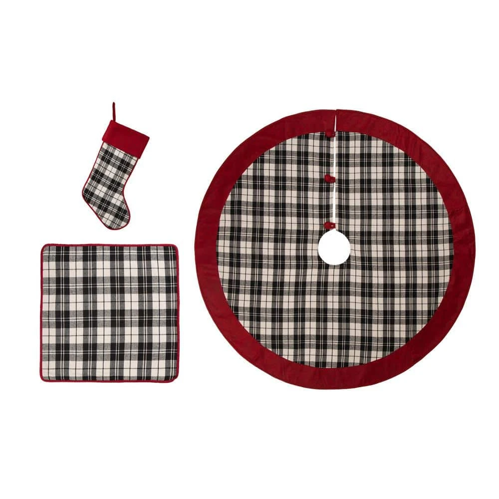 Black and White Plaid Christmas group including 1 tree skirt and 1 stocking and pillow cover well matched with each other. This classic group makes for the perfect decor at Christmas time, add a splash of beauty to your home. Spot clean with mild detergent do not wash.