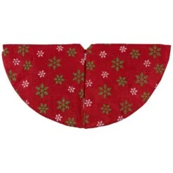 Northlight 20 In. Metallic Red With Green And White Snowflakes Mini Christmas Tree Skirt