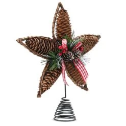 Rattan Star Tree Topper – Christmas Rustic Acorn Tree Topper With Holly And Berry Decorations