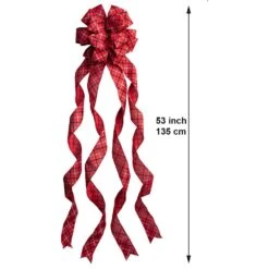 Red And White Large Ribbon Christmas Tree Topper Bow And 12 Mini Bows In Fair Isle Print (13-Pieces)
