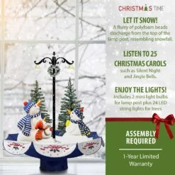 29 In. Christmas Snowy Indoor Snow-Family Scene With Blue Umbrella Base