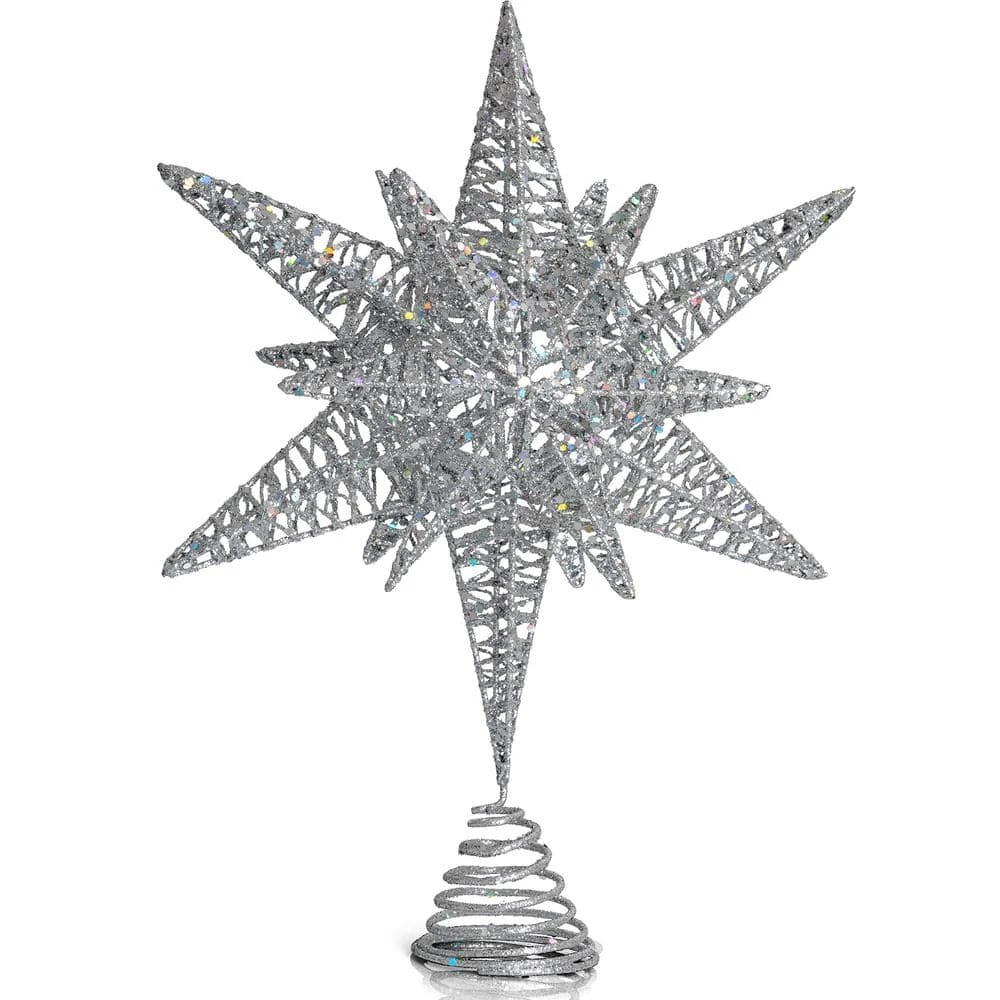 - Star tree topper measures 12 in. x 12 in. and is crafted of high-quality unique silver shimmery wire