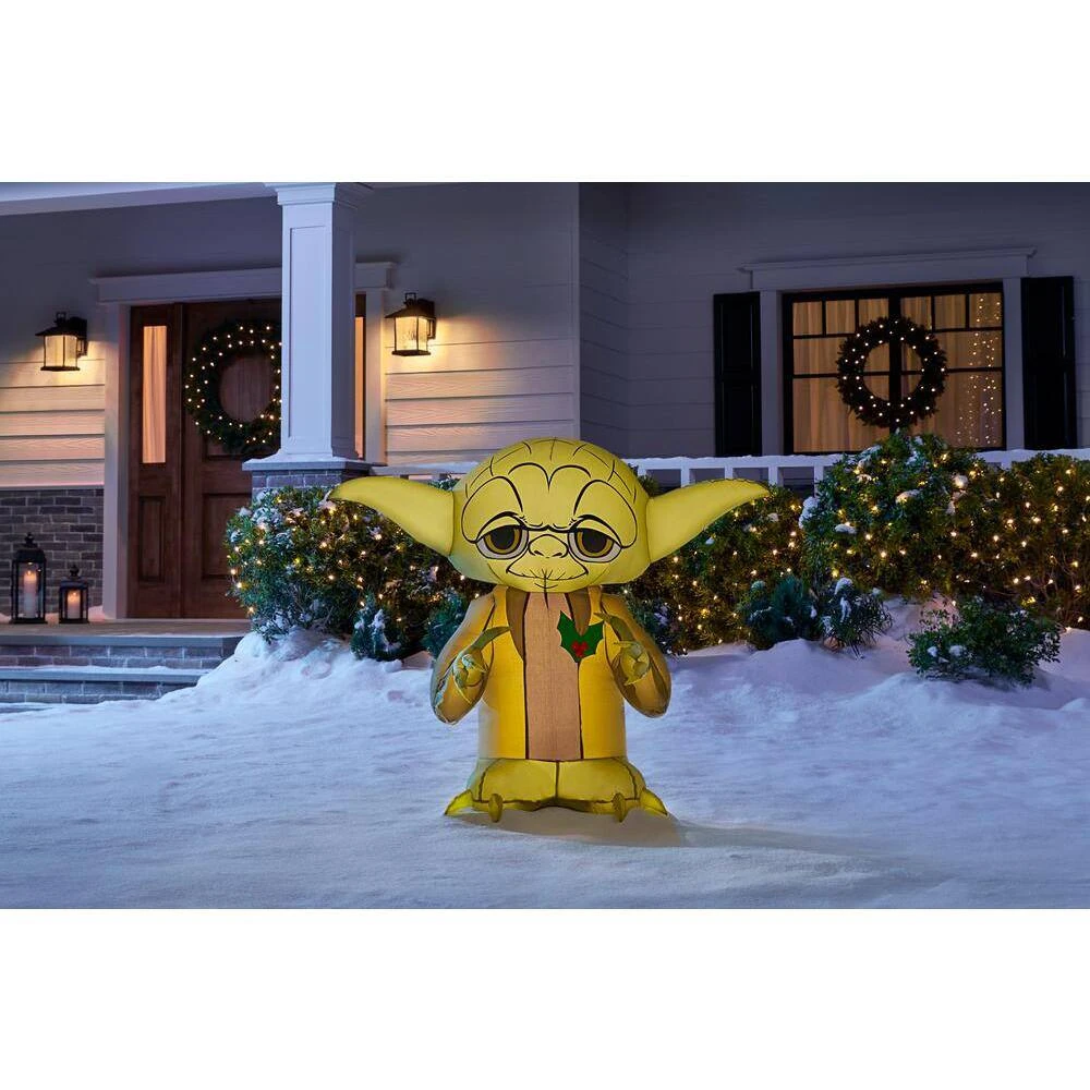 Get into the holiday spirit you will with this adorable Yoda inflatable. The iconic character stands 3 ft. high, and he is a must-have for Star Wars fans this Christmas. The delightful decoration adds an eye-catching component to your yard decor. Internal LED lights produce a merry glow at night, and Yoda self inflates in moments. The force is sure to be with you as you plug in, stake down and watch the magic unfold. It’s never been easier to decorate with this fun Christmas inflatable.