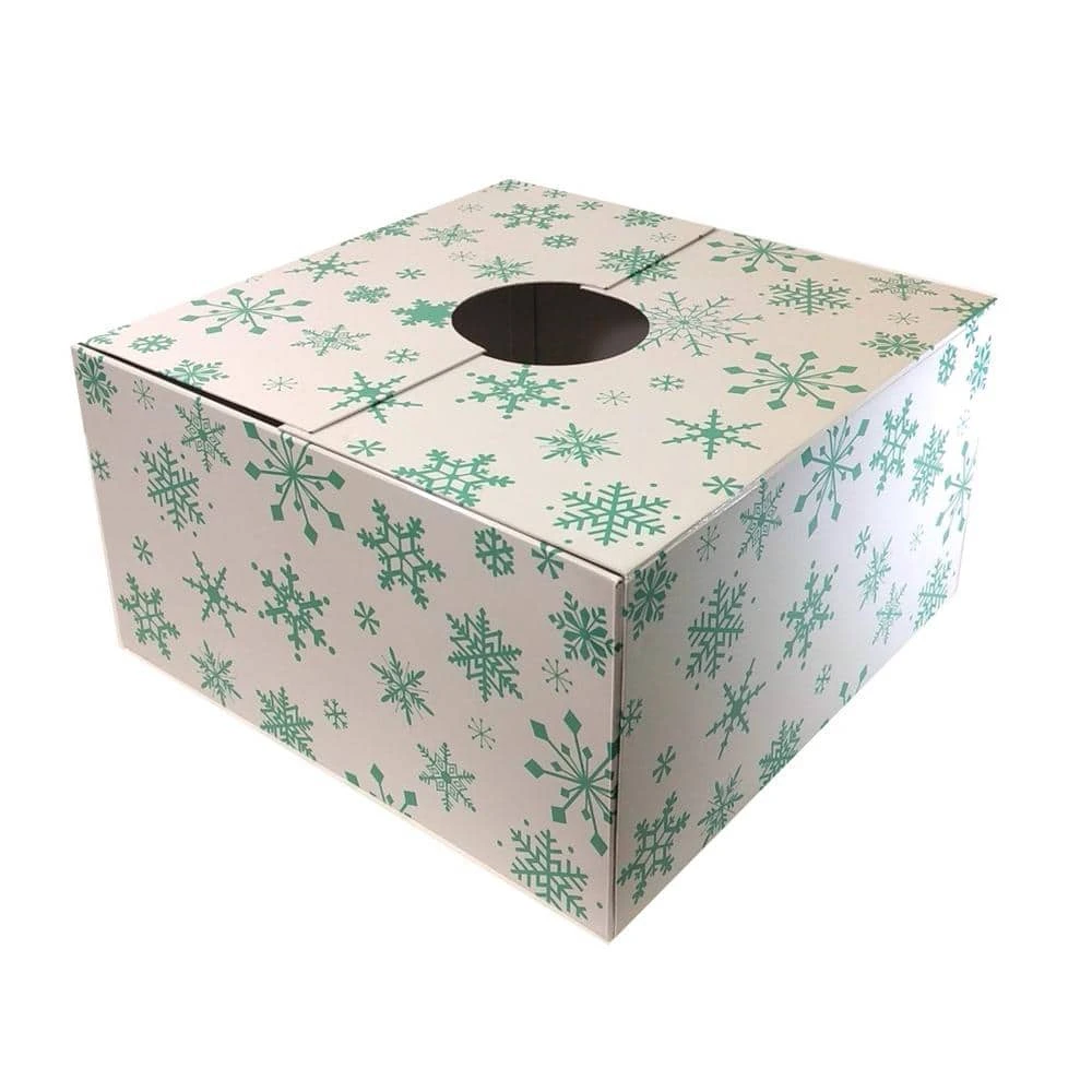 Folds flat for easy storage Works with or without a tree skirt Reusable Durable, water resistant paperboard will last for years The Original Christmas Tree Box – The Decorative tree stand cover that looks like a Christmas Present. Designed to cover tree stands for both artificial and fresh cut trees. The Original Christmas Tree Box adds the festive, finishing touch to compliment any Christmas decor.